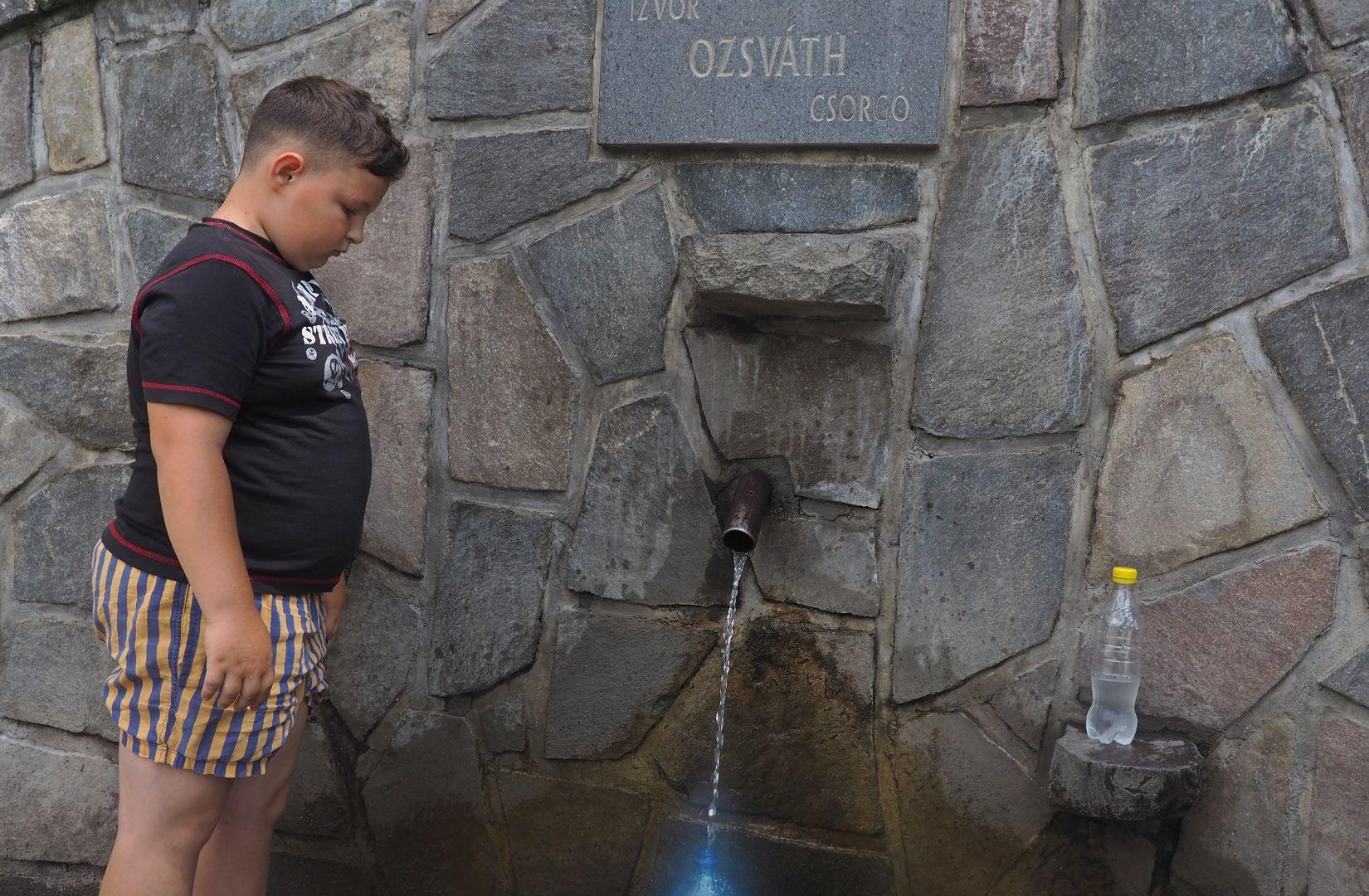 Șinele de mocăniță taie periodic șoseaua. Dăm de un izvor, unde un bunic în cărucior electric vine să ia apă însoțit de un nepot grăsuliu, pe bicicletă. Băiatul pune sticla de apă sub jet, se uită fix la ea și cade adânc pe gânduri.