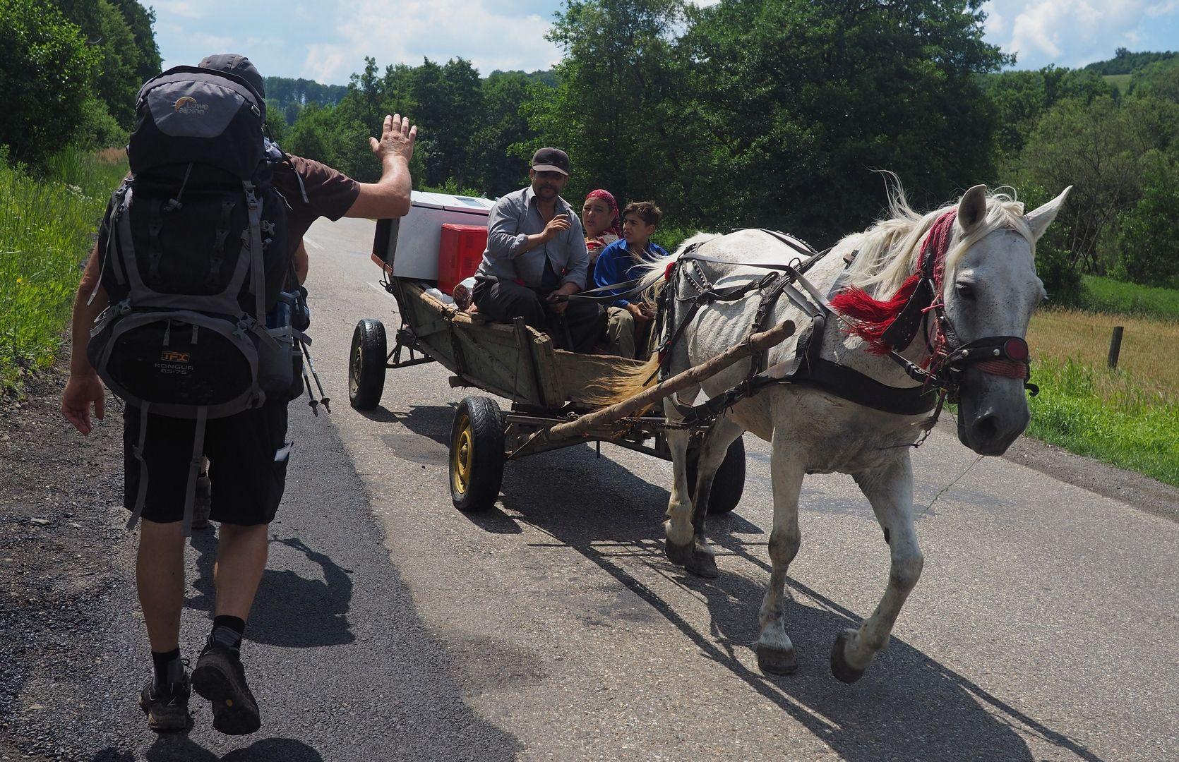 E ciudat pe șosea, fiindcă e cam îngustă. Tiruri încărcate cu lemne dau să ne măture în șanț. Număr șase, toate cu remorcă. Căruțașii se crucesc la noi și ne îndeamnă în maghiară să umblăm până la capăt, care o fi ăla.