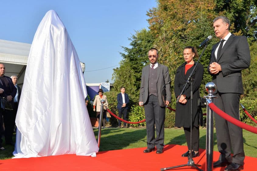 Acestea fiind spuse, Gabriela Firea dezvelește statuia prințului Rainier al III-lea de Monaco.
