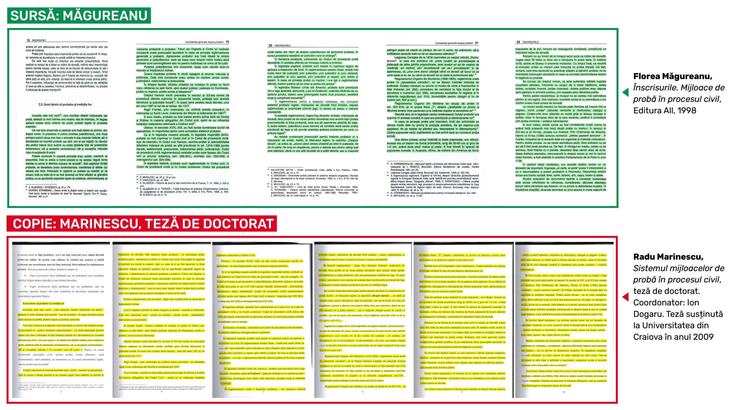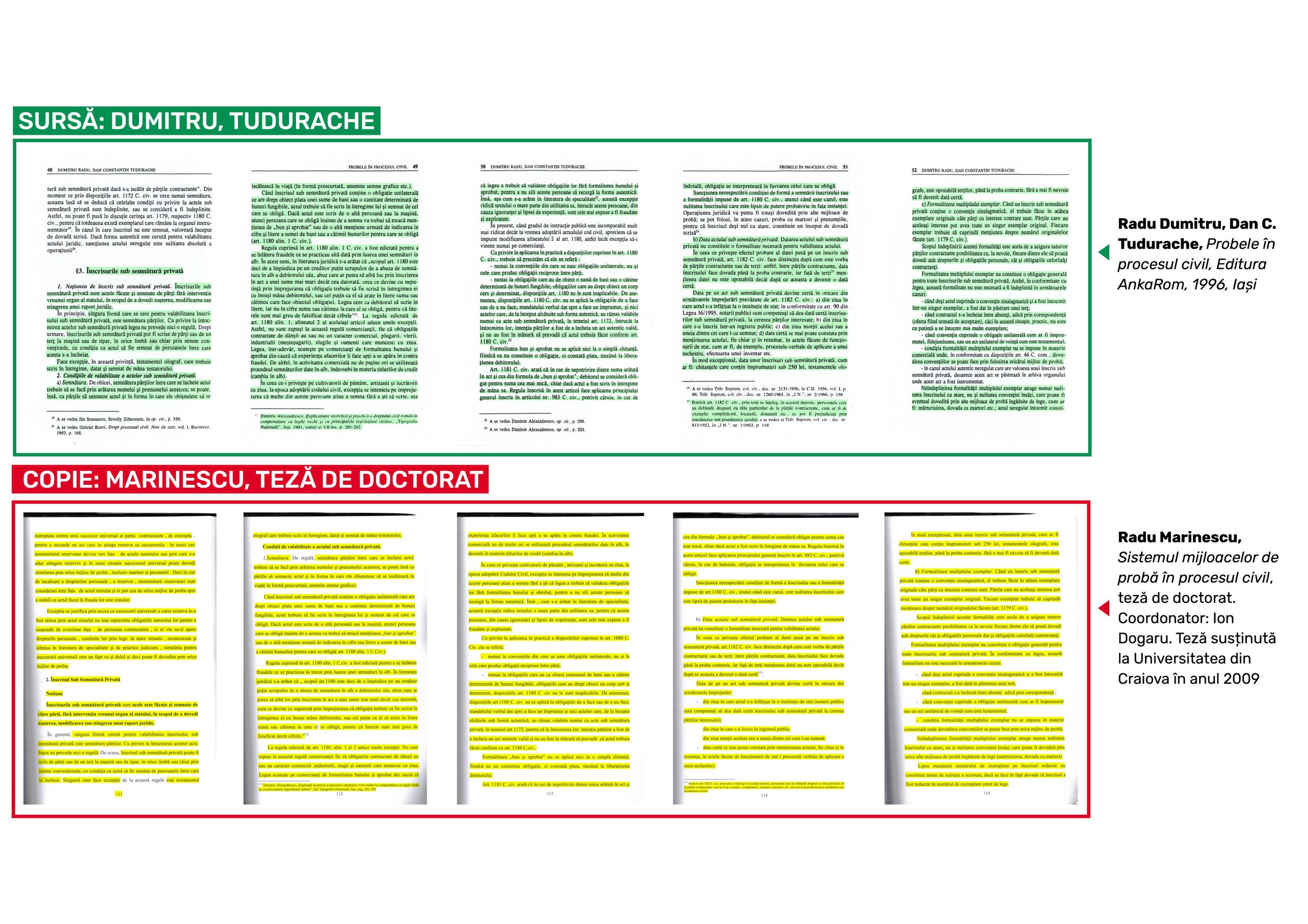 Alte 53 de pagini din doctoratul lui Radu Marinescu sunt plagiate din lucrarea Probele în procesul civil, apărută în anul 1996 la Editura AnkaRom din Iași și semnată de Radu Dumitru și Dan Tudurache.