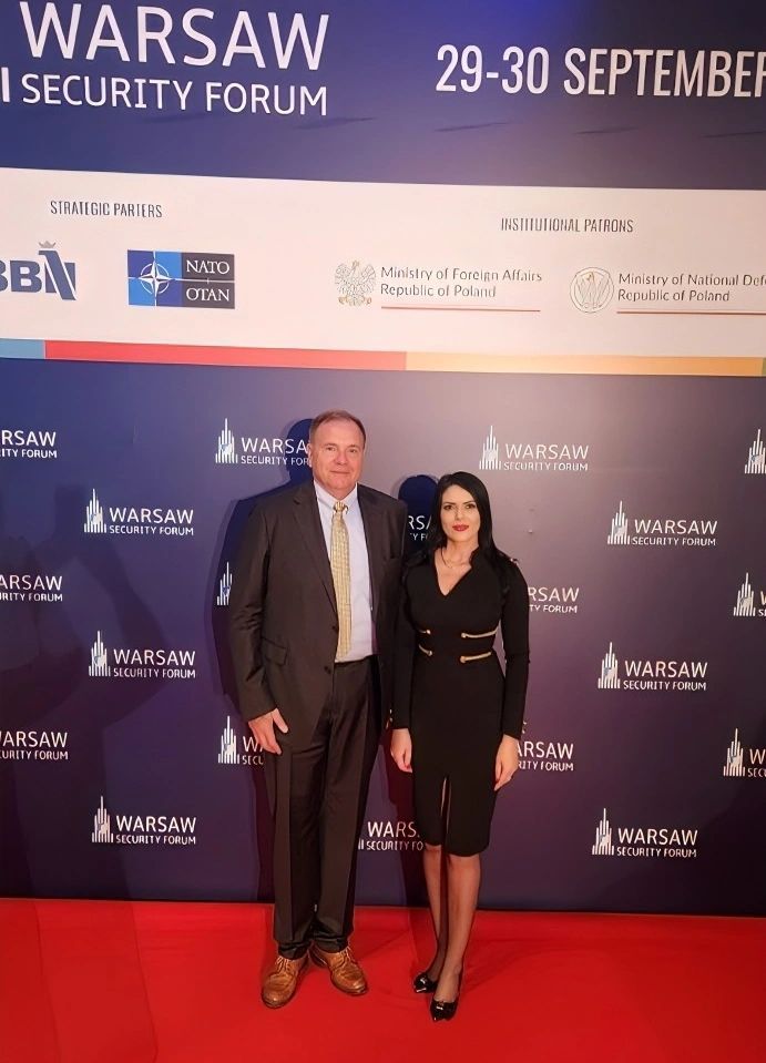 Ioana Păiuș alături de Ben Hodges, fostul comandant al trupelor americane în Europa, la Warsaw Security Forum. Sursă foto: LinkedIn/Ioana Păiuș