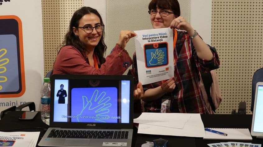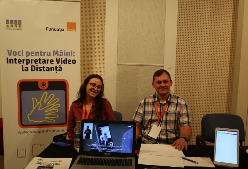 Tehnologia, care a ajutat la construcția unei punți de comunicare altă dată imposibilă între persoanele surde și auzitori, prin aplicația „Voci pentru mâini: interpretare video la distanță”, implementat de Asociația Națională a Surzilor din România – Filiala București și finanțat de Fundația Orange, în cadrul programului „Lumea prin culoare și sunet”, ediția 2017.