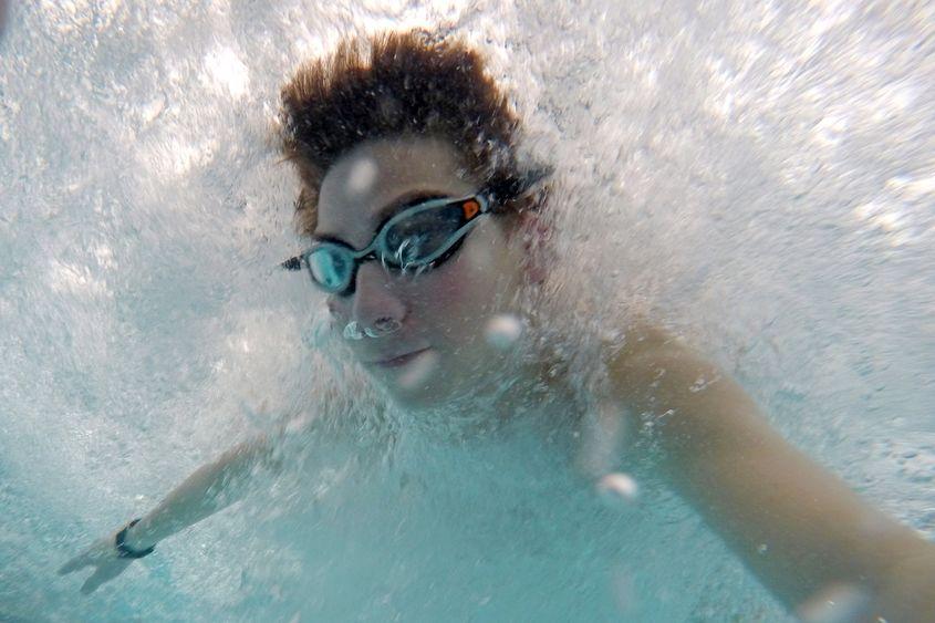 Cât despre înot, totul se rezumă la un fel de înaintare lentă, non-agresivă, în poziție verticală, de tip căluț de mare, către un capăt de bazin ce pare că se tot îndepărtează, în loc să se apropie.